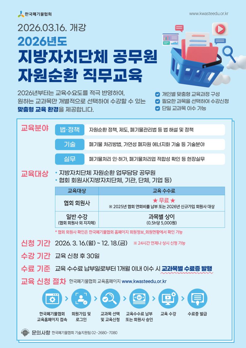 [공무원교육] 2026년도 지방자치단체 공무원 자원순환 직무교육 개강안내(3.16)